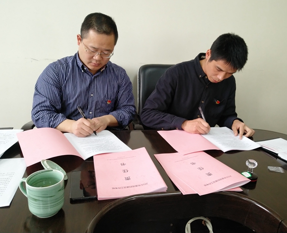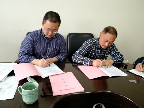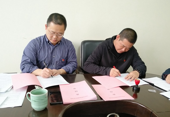 图为集团公司党委与党办及各党支部签订《党的建设工作考核责任书》