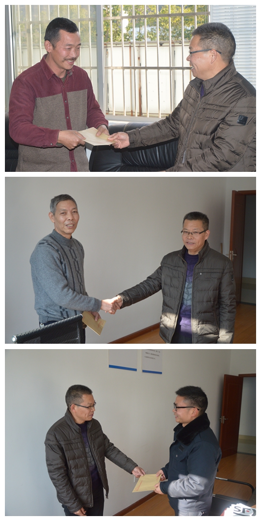 从上到下依次为廖委员慰问汽校的叶连武、检测站的李华南、检测站的金军辉等三位同志