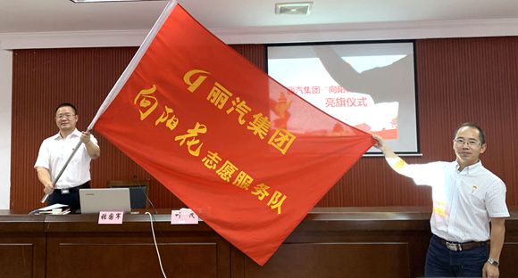 专题党课后,还举行了丽汽集团“向阳花”志愿服务队亮旗仪式。经过前期征名和讨论,集团公司党、政、工、团四条线的志愿服务队合并定名为“向阳花”志愿服务队,此举将规范统一丽汽集团的志愿服务载体,使广大党团员和员工投身志愿服务的参与面更为广泛。