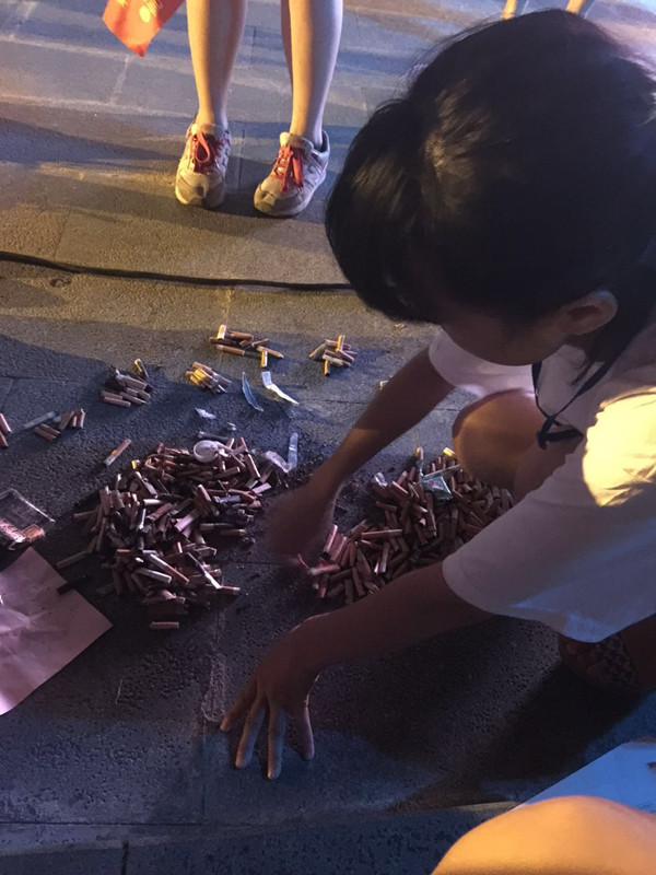工作人员清点烟头