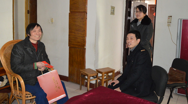 2月12日上午,集团公司机关党支部书记沈吉彪带领支部委员到灯塔小区慰问结对帮扶的困难职工王华民,专程向王华民和其家人送上了组织的关爱和新春祝福。