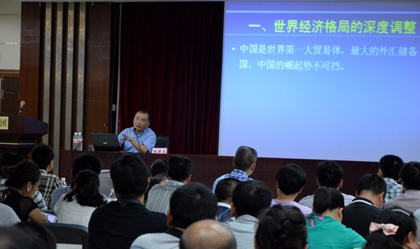 在上课过程中,陈敬东教授围绕世界经济格局的深度调整、中国经济的换档期和阵痛期、大胆创新落实改革意图、中国经济的发展趋势分析及新形势下企业如何应对挑战等五个方面对当前宏观经济形势进行了分析讲解。在企业如何应挑战中,陈教授指出:在当前形势下,企业应从培育新的意识、找准新的定位、制定新的战略、开发新的产品和服务、建立新的品牌等方面进行努力,迎接新一轮挑战。