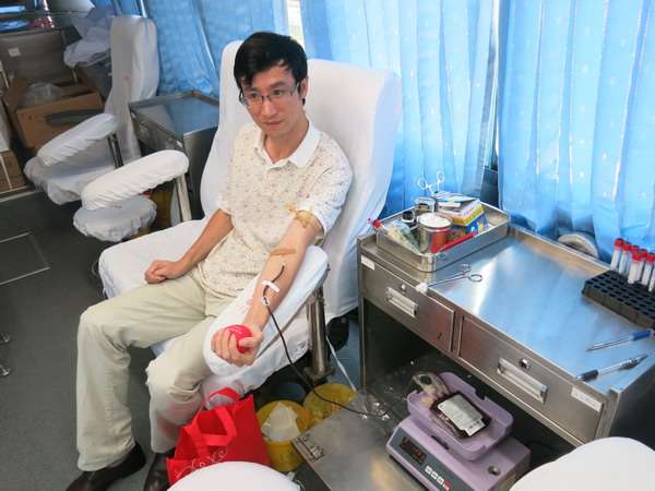 在献血现场,集团公司广大党员干部职工用实际行动纷纷加入到了无偿献血的队伍中,他们用炙热的鲜血铸起了生命之舟,描绘出了党旗最火红的颜色,为构建和谐文明的丽水增添了最美丽的光彩。