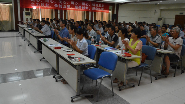 7月16日下午,丽汽集团党委组织开展了一次“在职党员学党章、党委书记上党课”活动。与会的120余名在职党员手捧鲜红的《中国共产党章程》,观看了电教片《与时俱进话党章》,认真聆听了集团公司党委书记叶茂亲自主讲的《“从严治党”的新常态下抓好企业党建工作》专题党课。