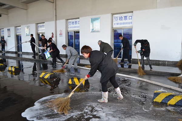 1月20日下午,东站经理室带领东站党(团)员志愿者进行了站内卫生大扫除。在活动现场,大家干劲十足,分工合作,党(团)员志愿者们充分发扬先锋模范、不怕苦不怕脏的精神,对发车位以及站场地面进行了彻底的清理,经过大家的共同努力,发车位焕然一新,地面整洁干净。