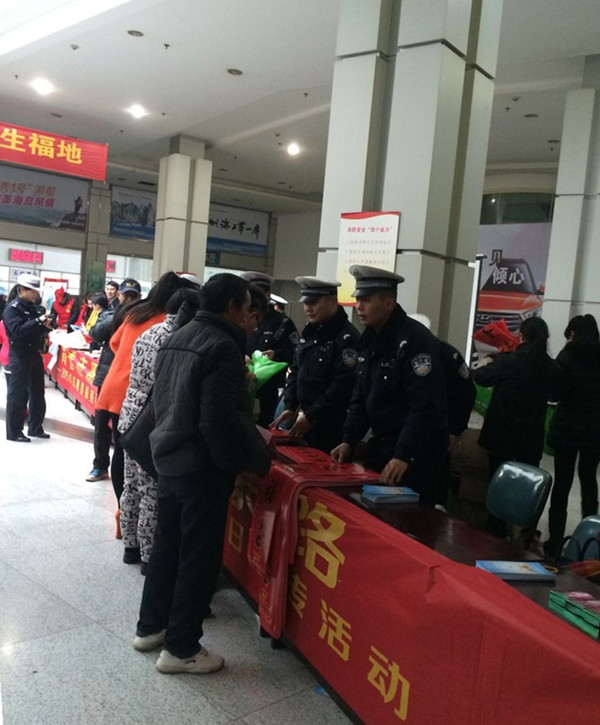 本次活动由丽水市公安局交警支队、丽水市公路管理局、金丽温高速、高速交警丽水支队、丽水市道路运输管理局、丽汽集团等单位参加,并在西站现场设立了春运服务点。活动现场热闹异常,咨询的旅客也络绎不绝,活动单位向广大旅客们发放了《珍爱生命、安全出行、拒绝黑车》、《文明交通安全宣传手册》等交通安全书籍和宣传册页,还为旅客们送上了年味十足的福字、对联和使用性强的浙江省高速公路行车指南地图作为新年小礼物,受到了广大旅客的欢迎。