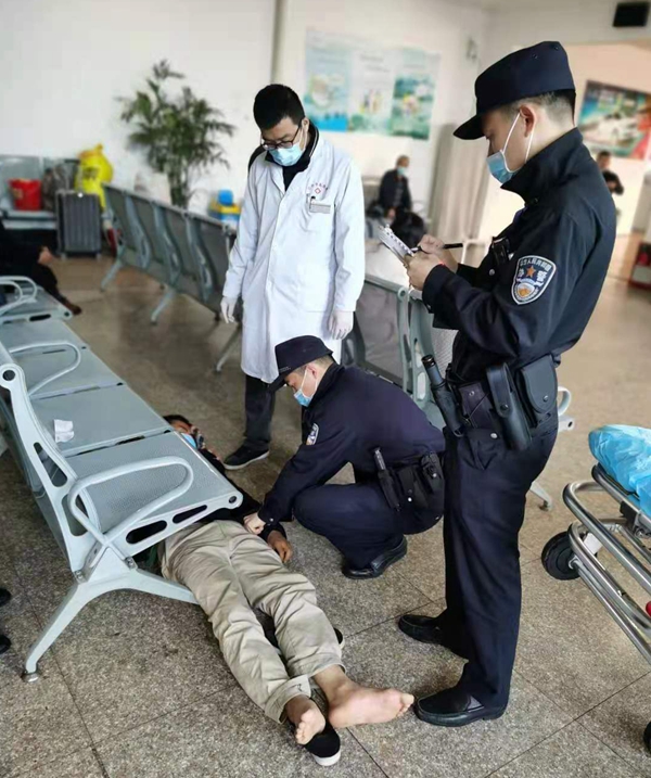 医护人员和警察到现场后对旅客身上进行检查,在旅客身上发现了身份证。经医生初步诊断,该旅客为饮酒过量导致的不省人事,需送到医院去醒酒。警察通过旅客的身份证查到了其家人的联系方式。潘何丰和陈亮协助医护人员和警察将旅客抬上救护车送往医院。