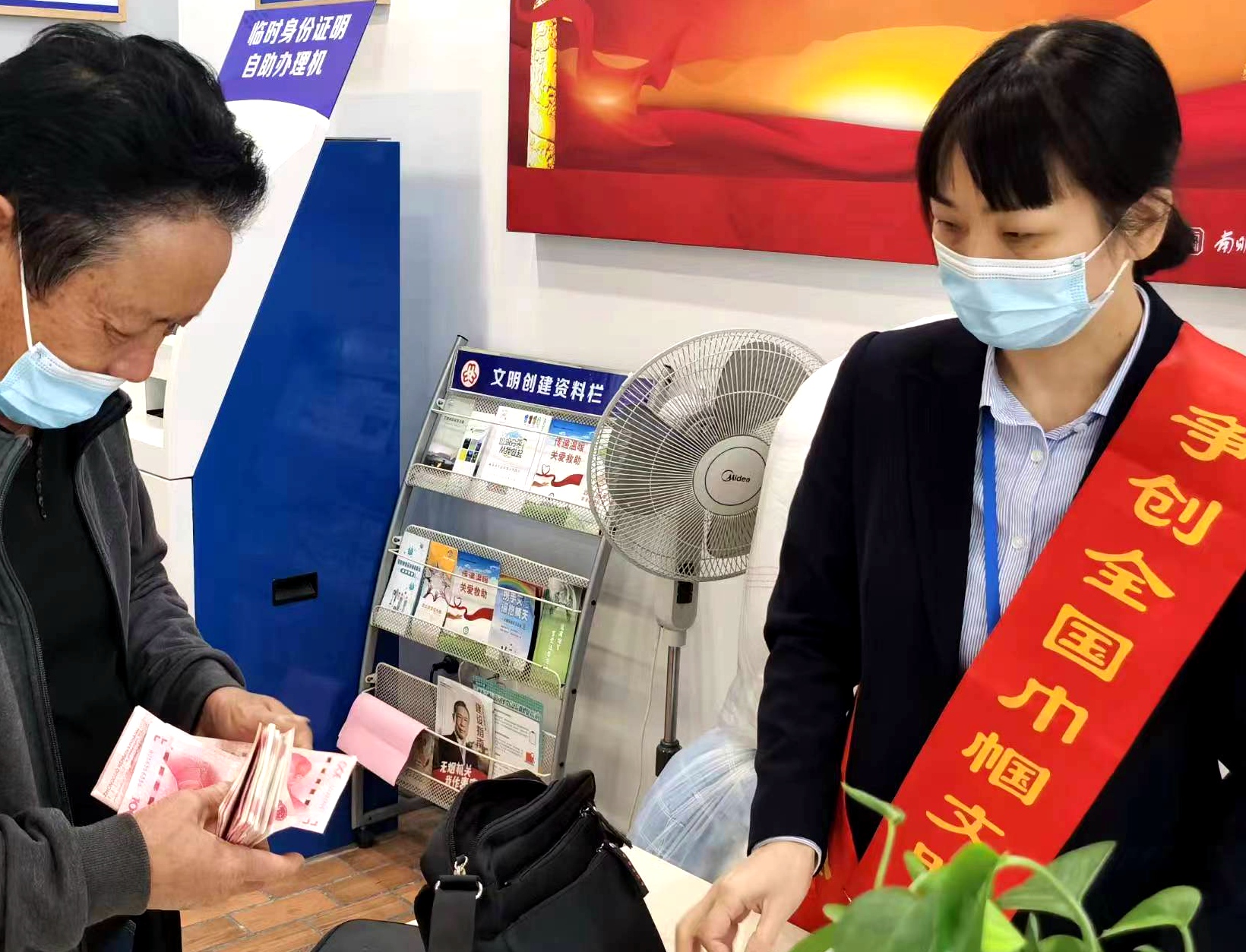 再三推辞后,大叔把钱放回包里说道:“你们的服务,你们的精神真棒,不愧是巾帼文明岗。”