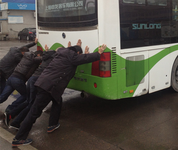 早上6时40分,开207线路的公交司机高师傅来到客运东站站前广场,和往常一样,准备出车。插入钥匙,转动启动按钮,之前的发动机轰鸣声却没听到,连续转了几次,车子还是没反应,高师傅心里隐隐觉得肯定是出问题了。经过检查,发现是由于天气太冷,电瓶电力不足无法启动。他马上打电话找来了车队的两名同事,一人把方向盘,两人推车,可车子移动过于缓慢,根本不可能通过人工打火启动。就这样,207路的公交车停在了东站站前广场的中央占着通道,影响了出站的交通。